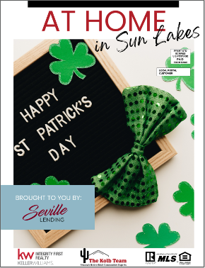 The Kolb Team and Seville Lending are proud to welcome you to the first edition of Sun Lakes at Home, a monthly publication delivered directly to your inboxes for your enjoyment. A special shoutout to our partners/advertisers who help to make this production possible. All of them provide valuable, pertinent services to a community like Sun Lakes and we hope you consider using them should you have needs in their area of expertise. Please use this link to peruse this new publication.