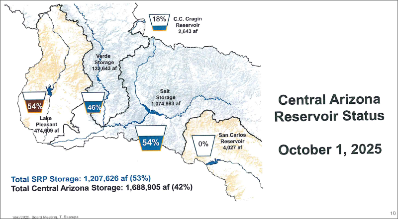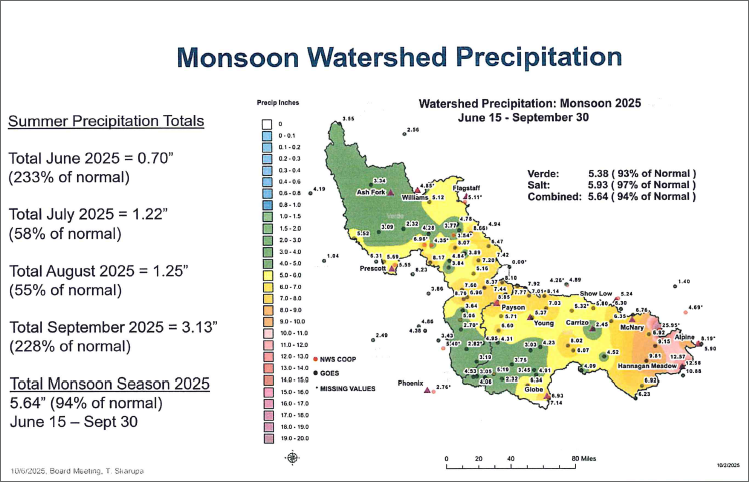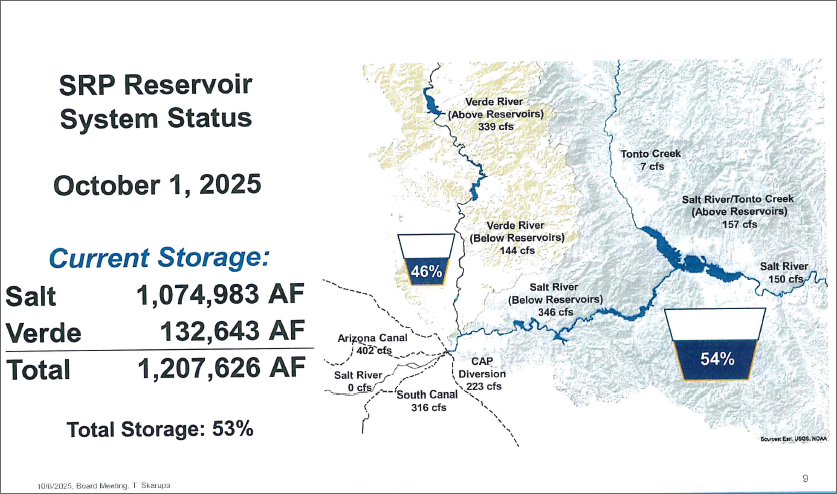 Here is your long-anticipated water update from SRP. These slides are from the SRP Board Meeting, October 6, 2025. The monsoon season officially ended on September 30th, and the data in the following slides is based on that end date.